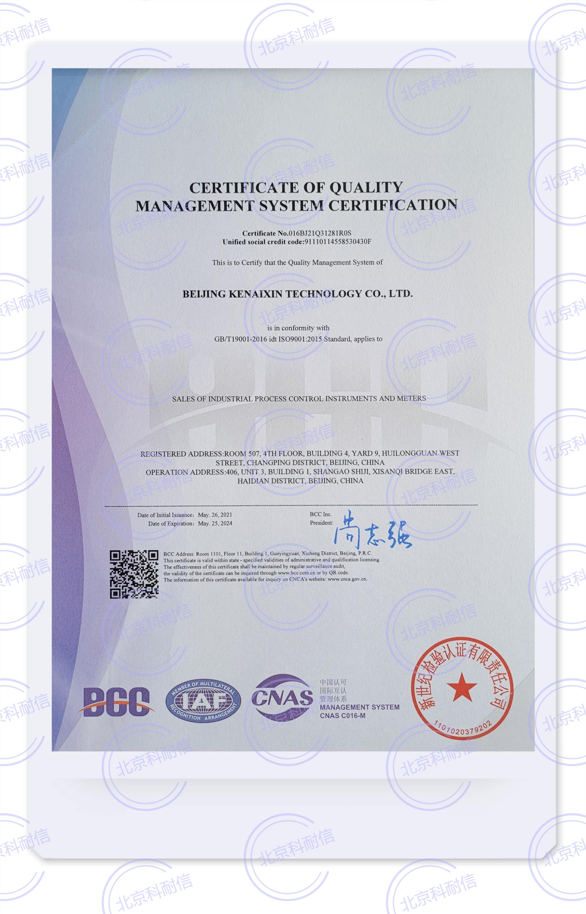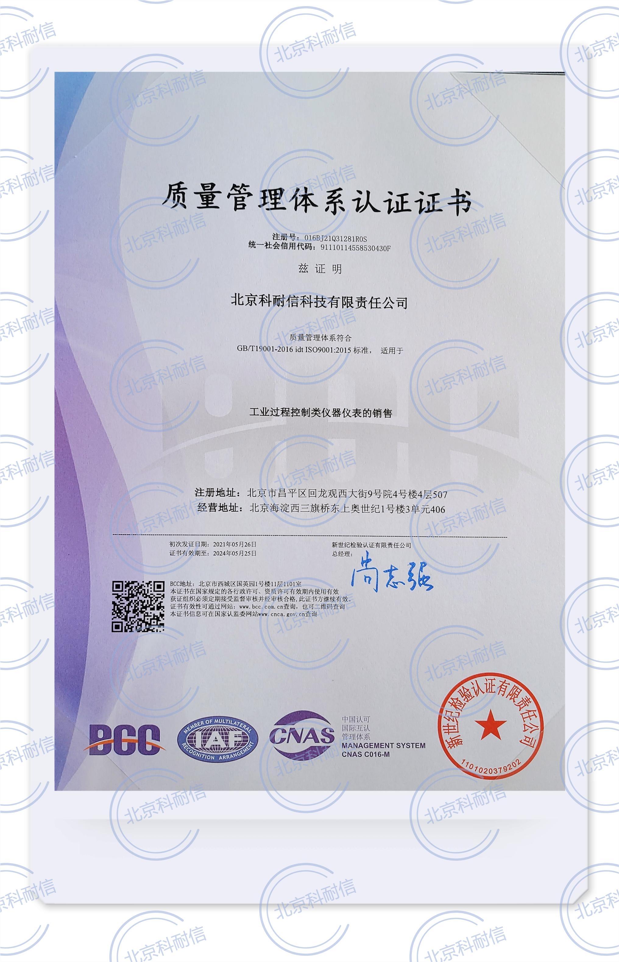 質(zhì)量管理系統(tǒng)認(rèn)證證書(shū)